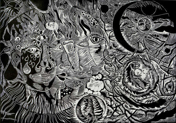 Copyright by VG Bild - Germany Elke Daemmrich Neue Welt, Linolschnitt, 42 x 60 cm, 2024 Nouveau monde, linogravure, 42 x 60 cm, 2024 Nuevo mundo, linograbado, 42 x 60 cm, 2024 New world, linocut, 42 x 60 cm (17" x 24"), 2024