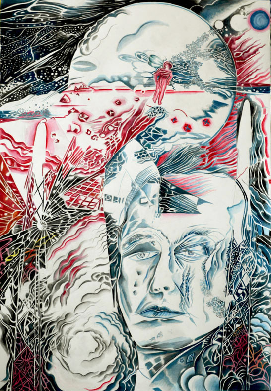 Copyright by VG Bild-Kunst - Germany Die Mission, Zeichnung, 100 x 70 cm, 2025 La mission, dessin, 100 x 70 cm, 2025 La mision, dibujo, 100 x 70 cm, 2025 The mission, drawing, 100 x 70 cm (39" x 30"), 2025