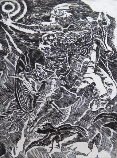 Valkurie 4, etching on zinc, 20 x 15 cm (8" x 6"), 2020