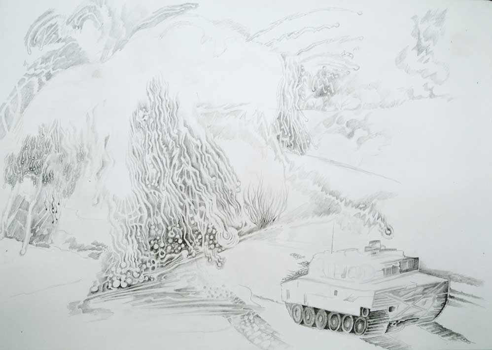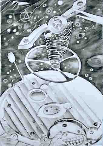 on paper The hole or the partial reproduction of the works of Elke Daemmrich as well as the informatic treatement and the public, prived or commercial utilisation are strictly prohibited. The works are protected by VG Bild-Kunst Germany who will demand a financial contribution for any fraudulent utilisation. "Clock work drawings" Grant NOMOS, Glashuette, Germany, 2025