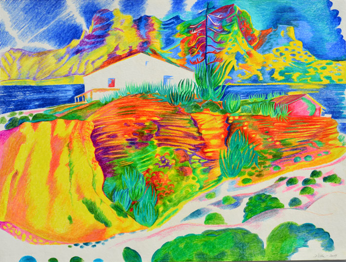 Maisons de Marseilleveyre et Ile de Riou, drawing, 36 x 48 cm, (14,2 x 18,9 inches, September 2014