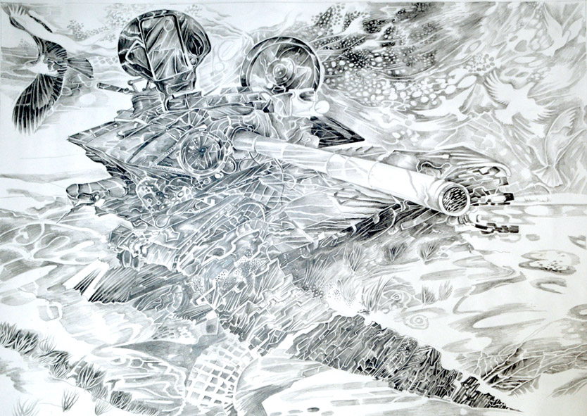 Copyright by VG Bild-Kunst - Germany Das Ende 1, Zeichnung, 70 x 100 cm, 2023 La fin 1, dessin, 70 x 100 cm, 2023 El fin 1, dibujo, 70 x 100 cm, 2023 The end 1, drawing, 70 x 100 cm (30" x 39"), 2023