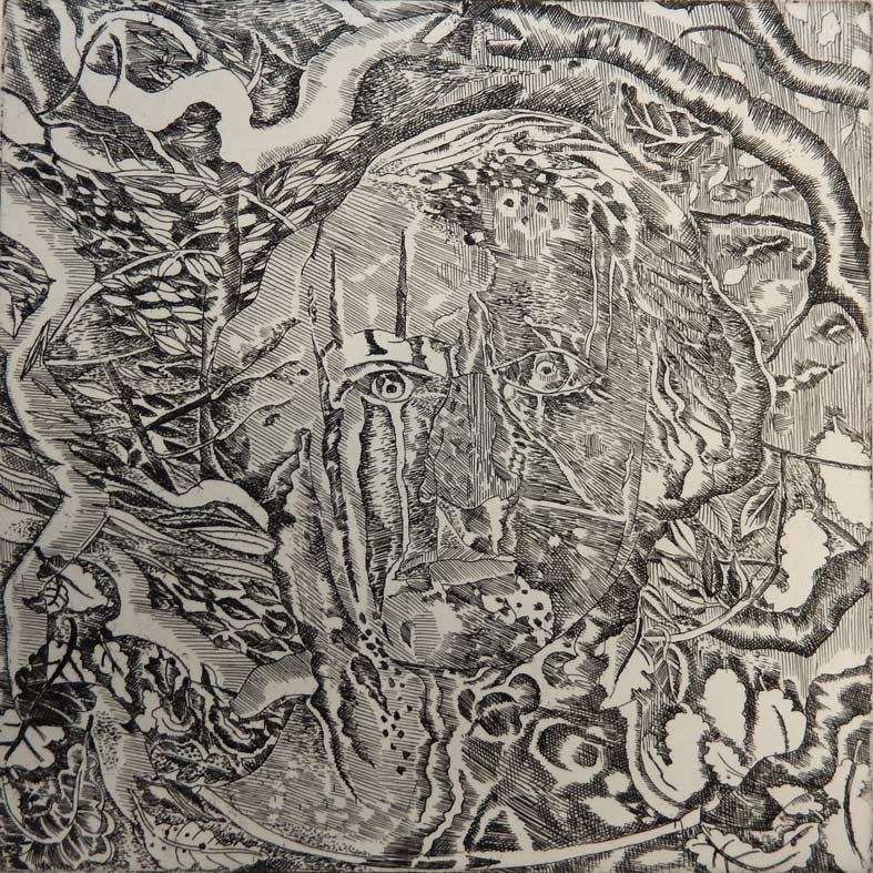 Back to nature (with three states), etching on zinc, 20 x 20 cm (8" x 8"), 2018