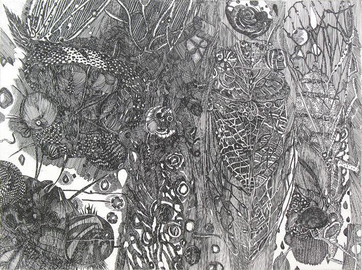Cicadas, etching on zinc, 30 x 40 cm, 2010