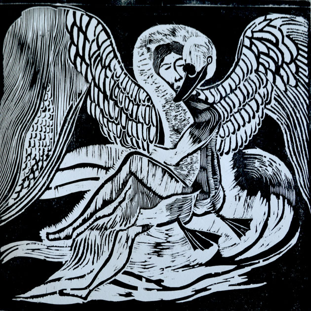 Swan angel, woodcut, 49 x 49 cm (24" x 24"), 2021