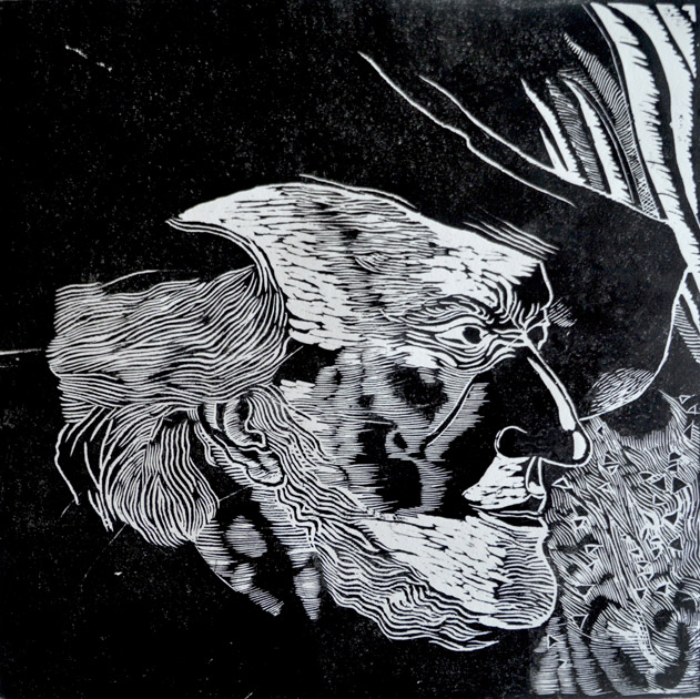 Portrait Wagner, woodcut, 49 x 49 cm (24" x 24"), 2021